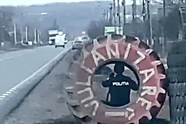 Un polițist din Iași a fost surprins montând un radar tip „pistol” pe un trepied,…